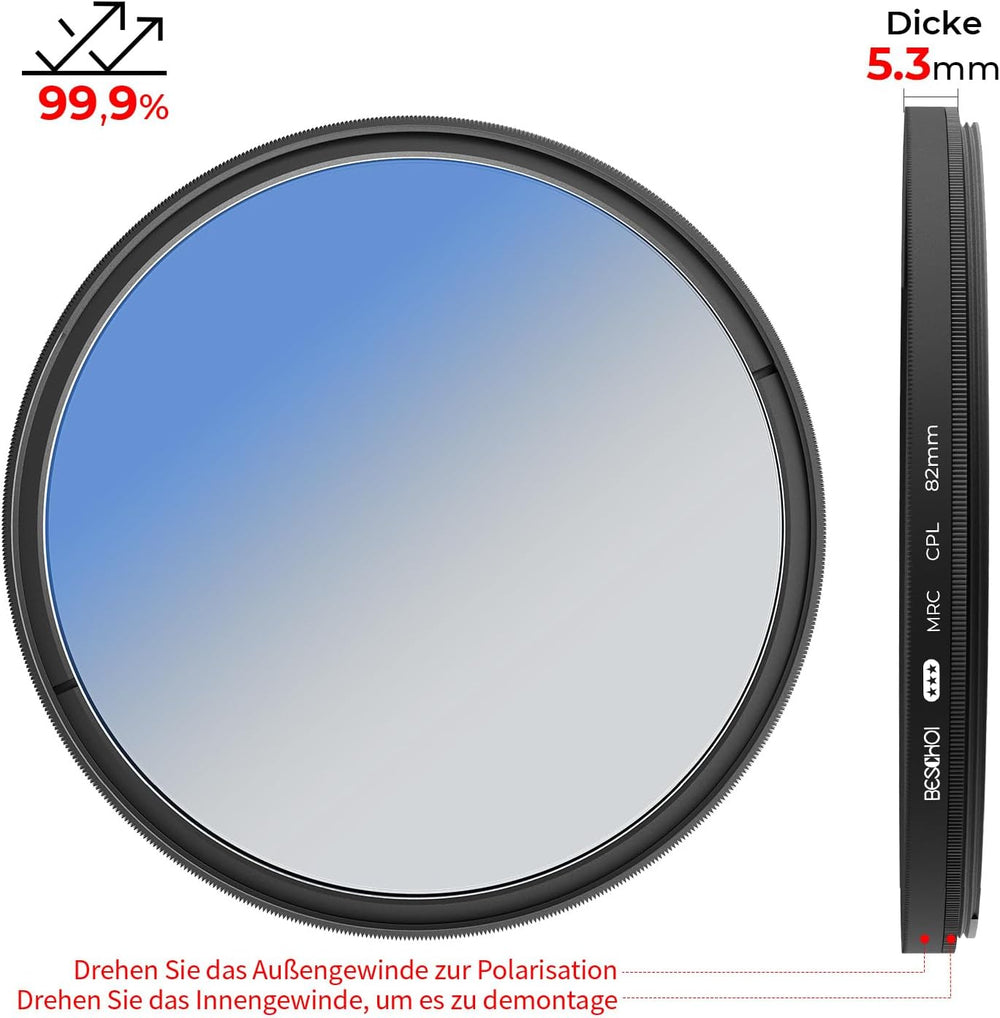 Beschoi 82mm Polarisationsfilter(Polfilter),CPL Filter mit 30 lagiger Mehrschicht Polarisationsfolie