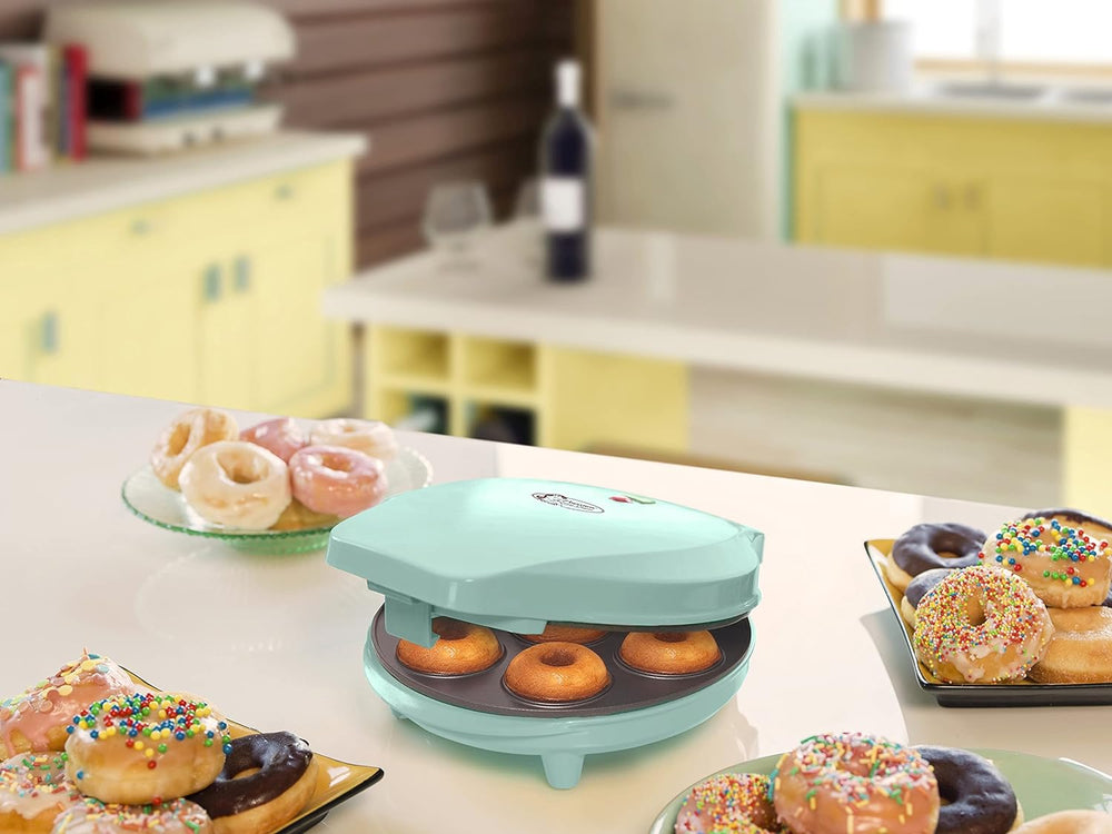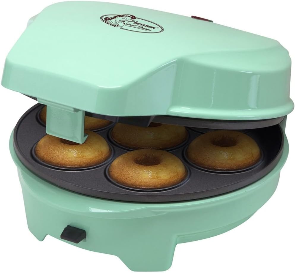 Bestron Donut Maker im Retro Design, Mini-Donut Maker für 7 kleine Donuts, inkl. Backampel & Antihaf