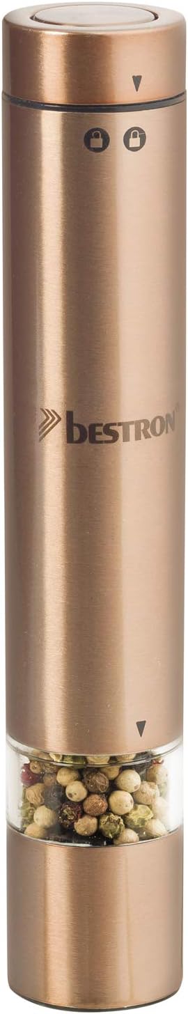 Bestron Elektrische Gewürzmühle für Salz und Pfeffer, Mit Keramik-Mahlwerk, Kupfer