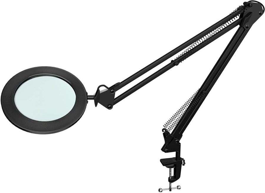 Beyamz LED Lupenleuchte, Arbeitsplatzlampe, 5 Dioptrien Lupe mit Licht - mit Klemme, Schwenkarm, Dim