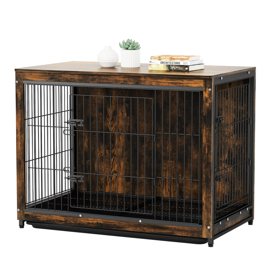 BingoPaw Hundekäfig XXL Hundebox Grosse Hunde, Hundehütte Indoor Holz mit 2 Gitter Türen und abnehmb