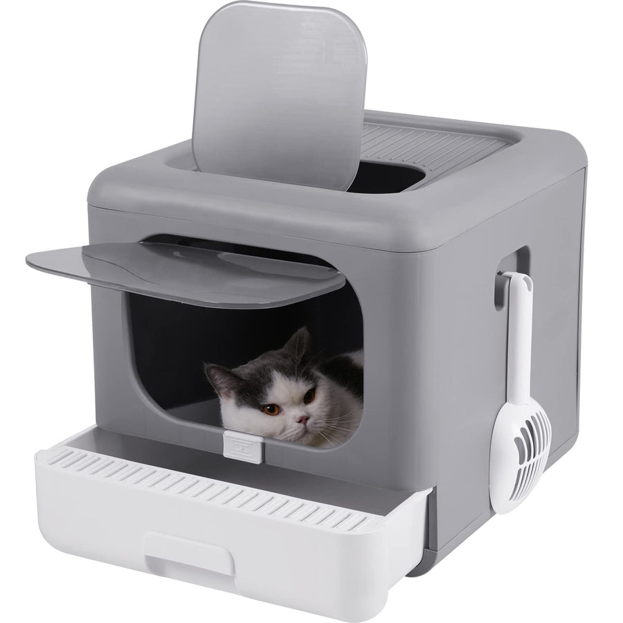 BingoPaw katzenklo mit Deckel XXL katzentoilette Faltbarer Geschlossener Mülleimer mit Abdeckung, Sc