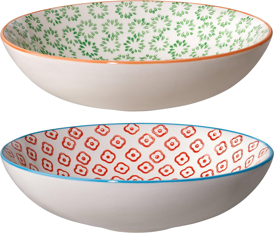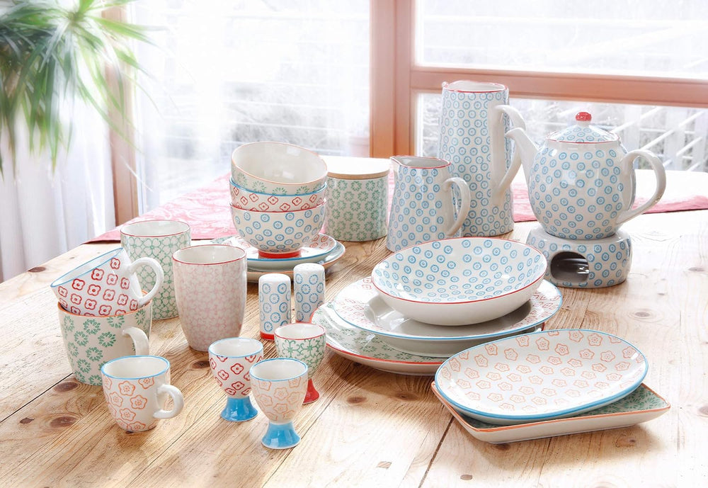 Bloomingville Schalen Emma Retro Suppenschale Suppenteller tiefer Teller Vintage ø 19 cm, grün rot,