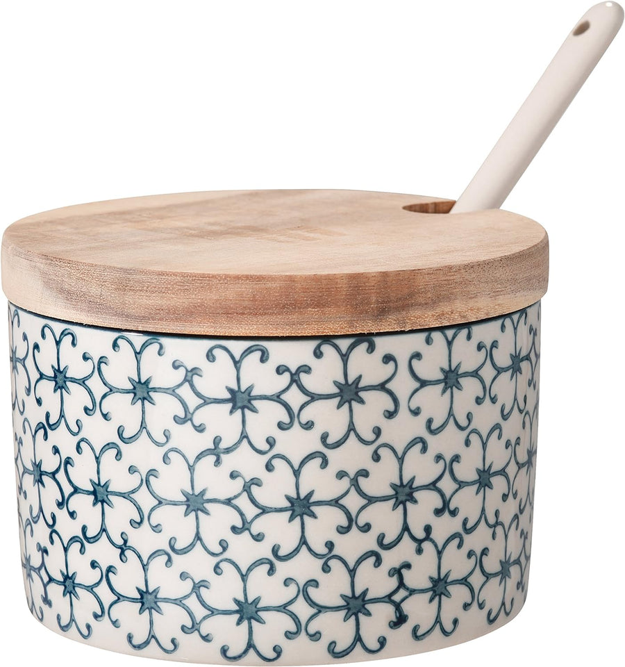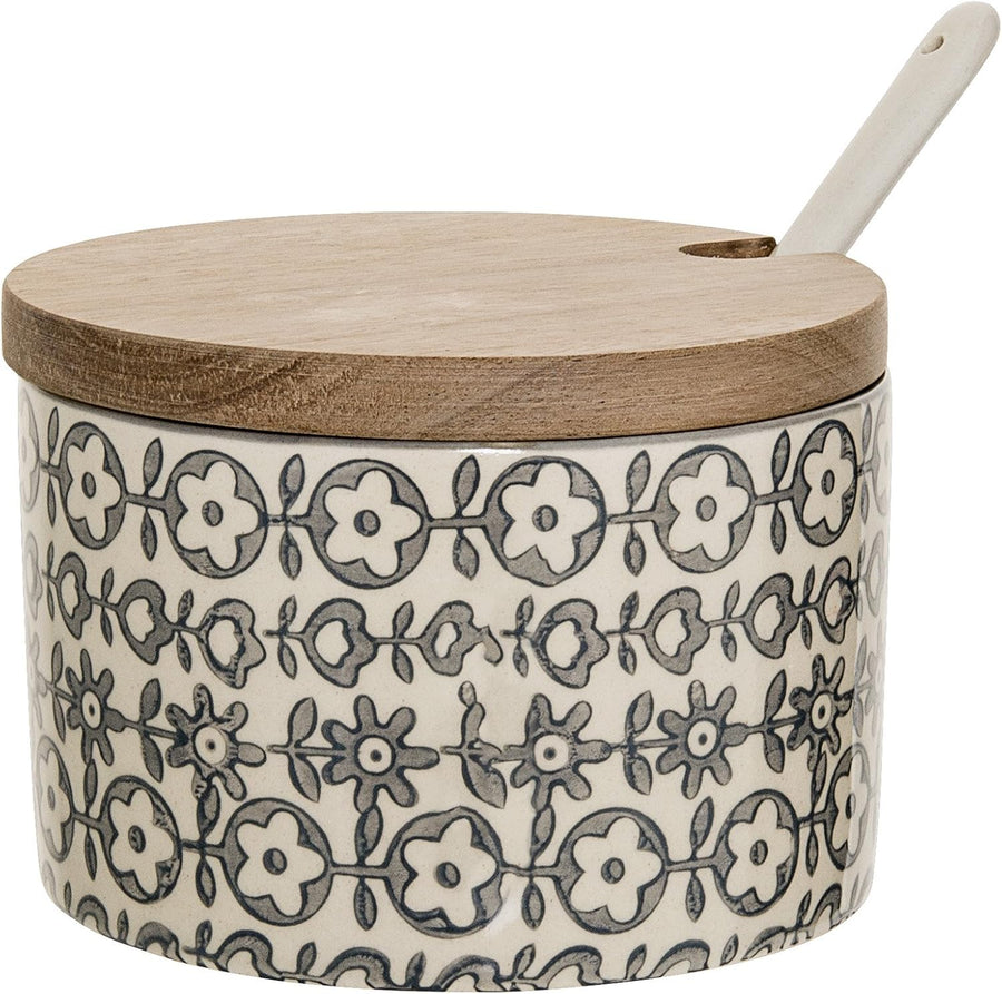 Bloomingville Salztopf mit Deckel und Löffel Kristina Retro Zuckerdose Vintage Topf für Marmelade Ø