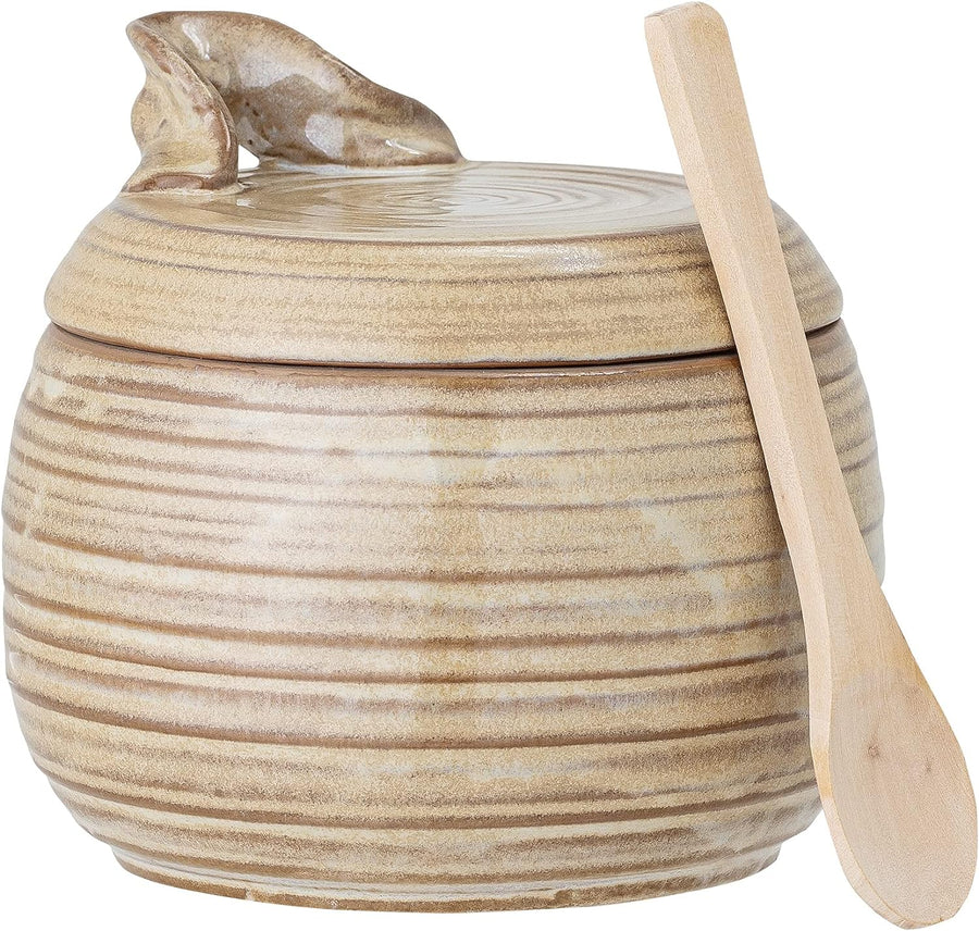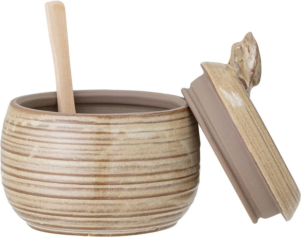 Bloomingville Behälter mit Deckel & Löffel Moss, naturfarben, Keramik