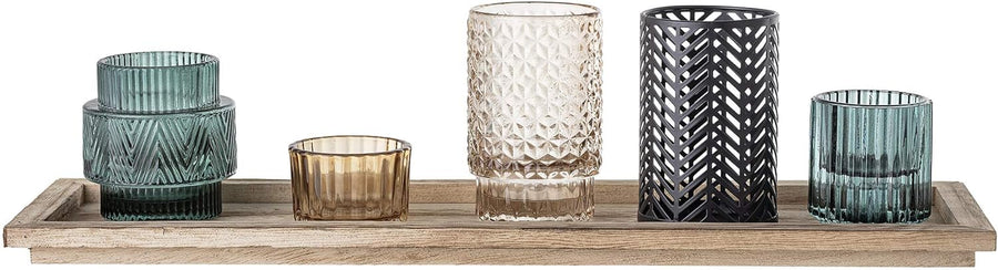 Bloomingville 6er Set Teelichthalter mit Tablett als Tisch-Deko für Haus und Garten Windlicht, braun