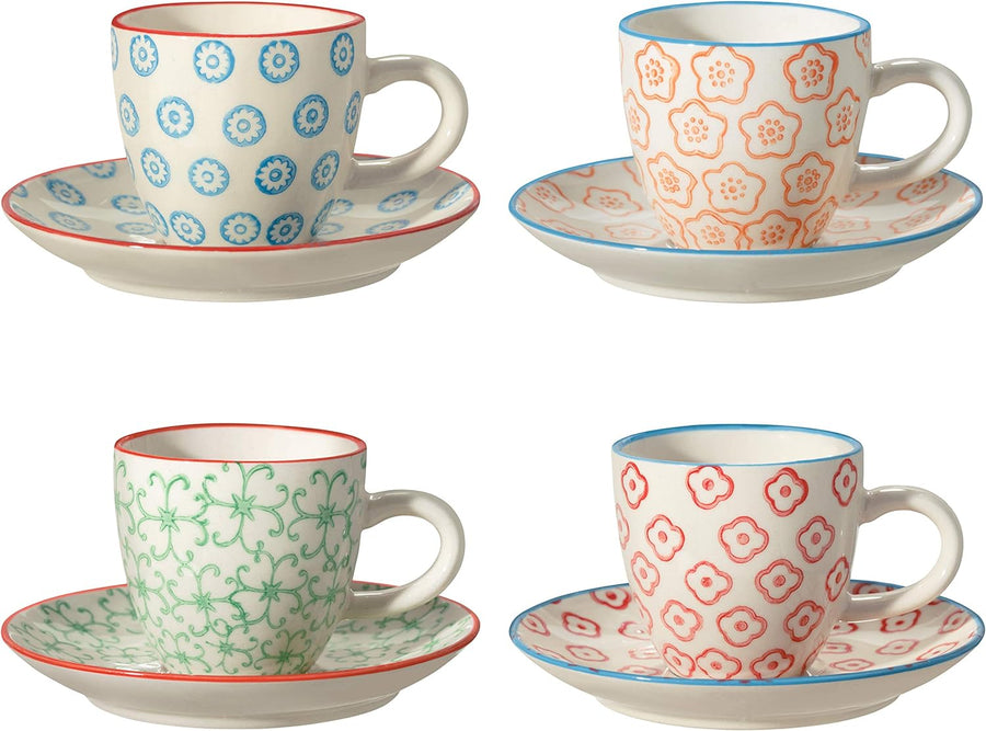 Bloomingville Espressotassen Kristina Retro Expresso Tassen mit Untertasse dickwandige C: Ø 6 x H 5,