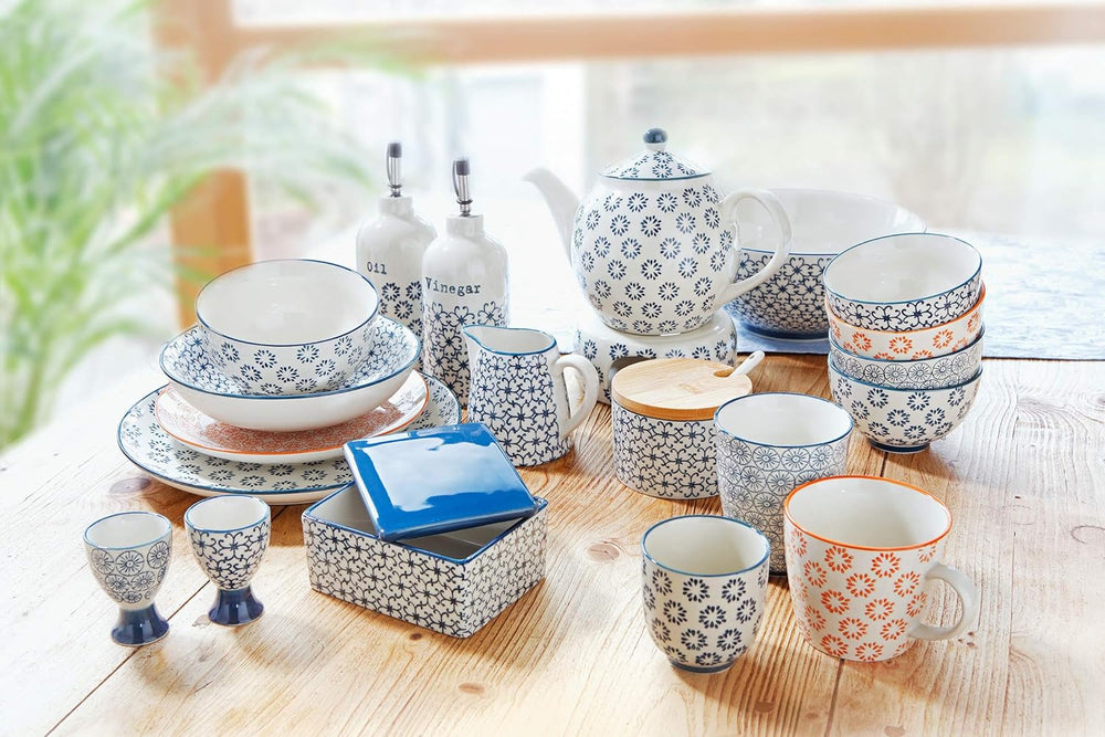 Bloomingville Essig-Öl-Set Emma Retro Essig und Öl Flaschen Set ø 7 H 20 cm, blau rot, Keramik, 2er