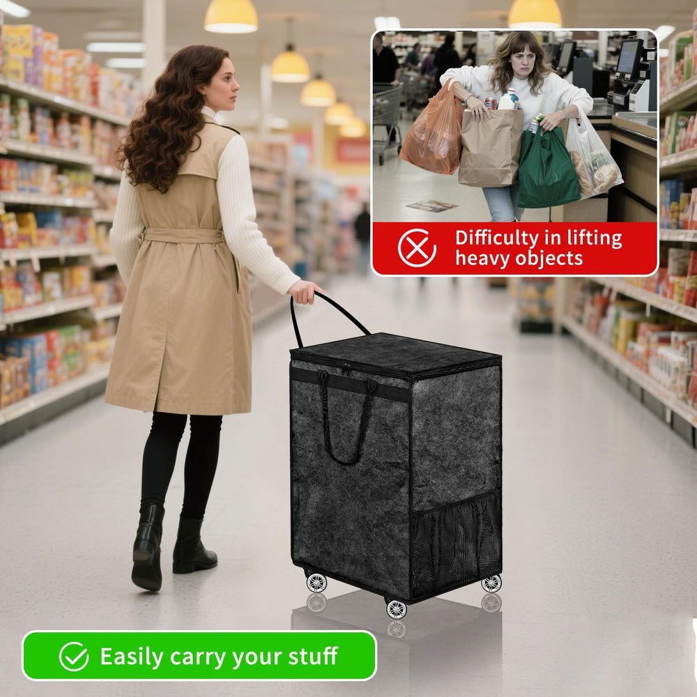 Boczif Grosser Wäschekorb, wiederverwendbare Einkaufstasche, zusammenklappbarer Einkaufswagen mit Ro