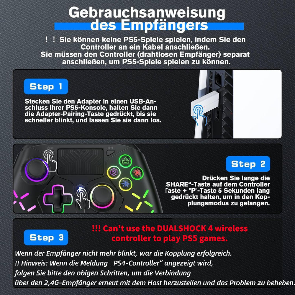 Bonacell RGB Wireless Controller für Ps5/PC/P4, Motor-Vibration/6-Achsen-Sensor/Turbo/3,5-mm-Audiobu