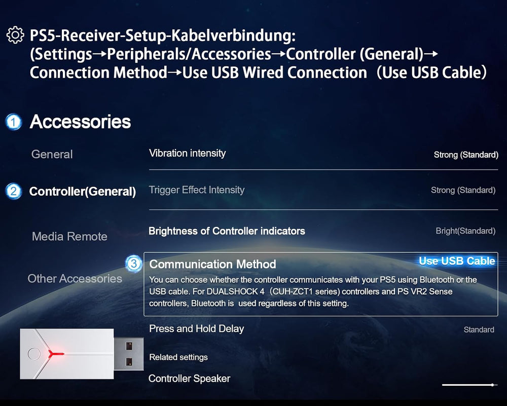 Kabelloser Controller with Adapter für PS5 Game LED Dual-Motor-Vibration/6-Achsen-Sensor/Turbo/3,5-m