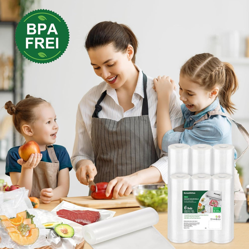 Bonsenkitchen Vakuumrollen 3 Rollen 28x600cm + 3 Rollen 20x600cm Vakuumierfolie - Profi Vakuumbeutel