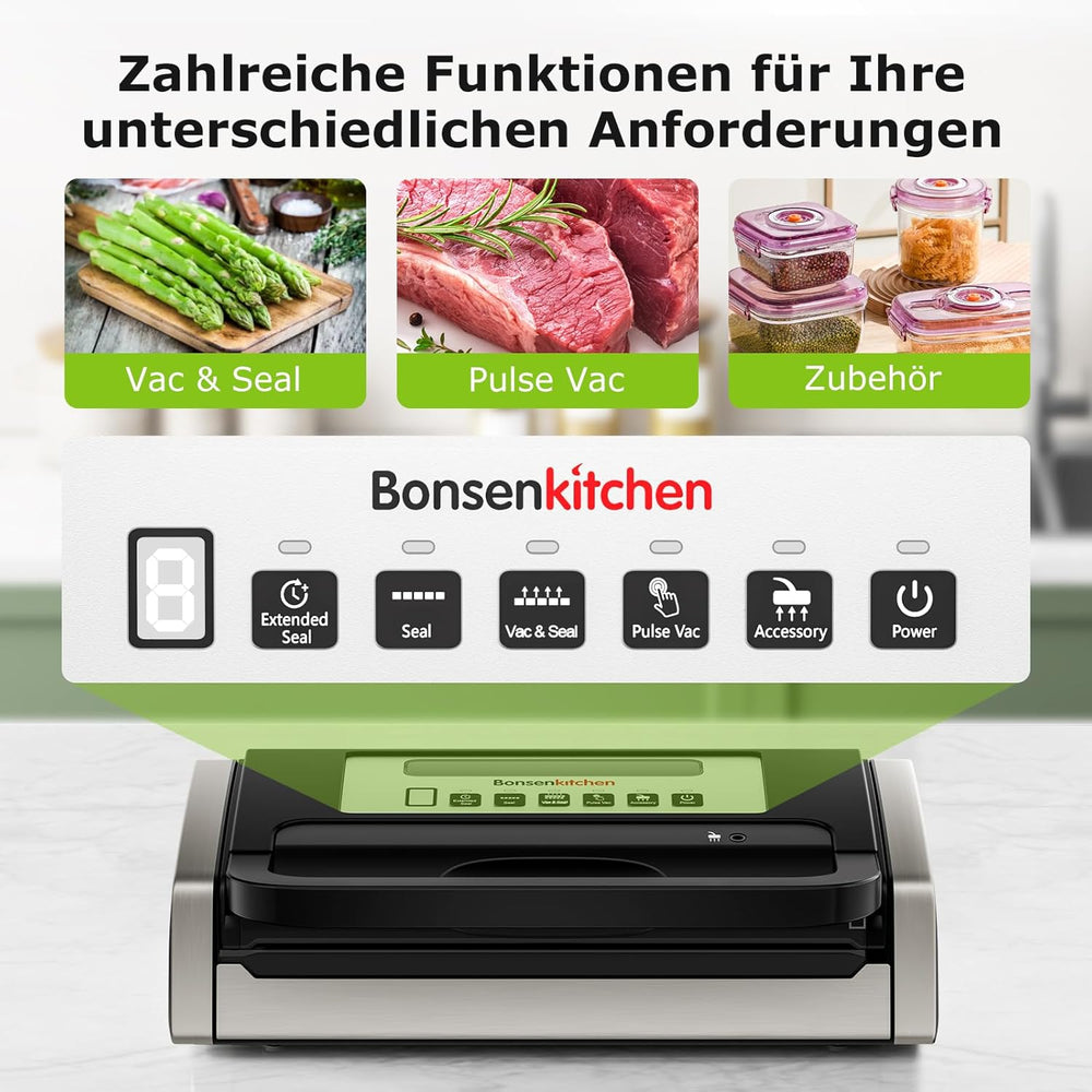 Bonsenkitchen Vakuumiergerät, Vakuumierer Folienschweissgerät für Sous Vide Kochen und Lebensmittel