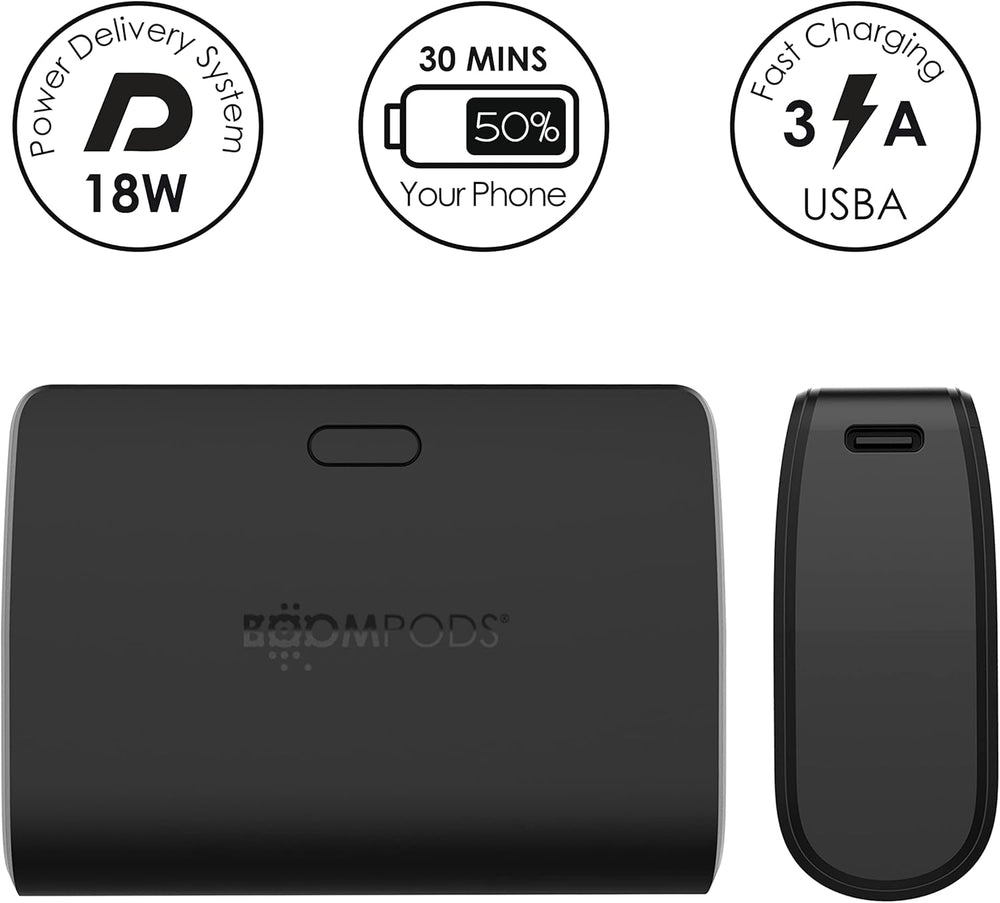 Boompods Powerboom Power Bank Schnellladefunktion 10000mAh - Universal USB/USB-C Powerbank klein, Ha
