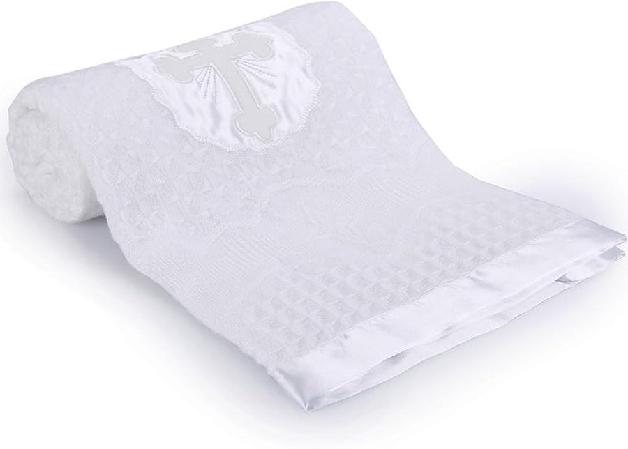 Booulfi Babydecke Weisse Taufe Kuscheldecke Kinderdecke, Neugeborenen Jungen Babydecke Mädchen Kreuz