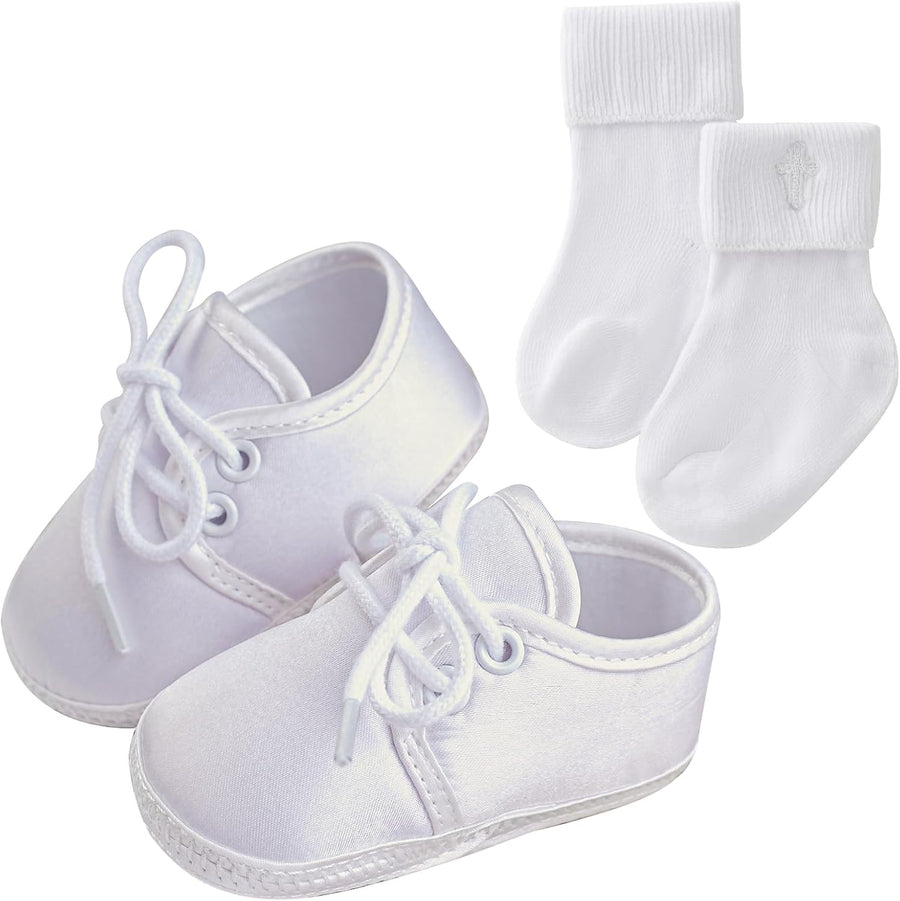 Booulfi Baby Jungen Schuhe Neugeborene Wihte Schuhe für Kleinkind Taufe Schuhe und Socken Set 0-18M