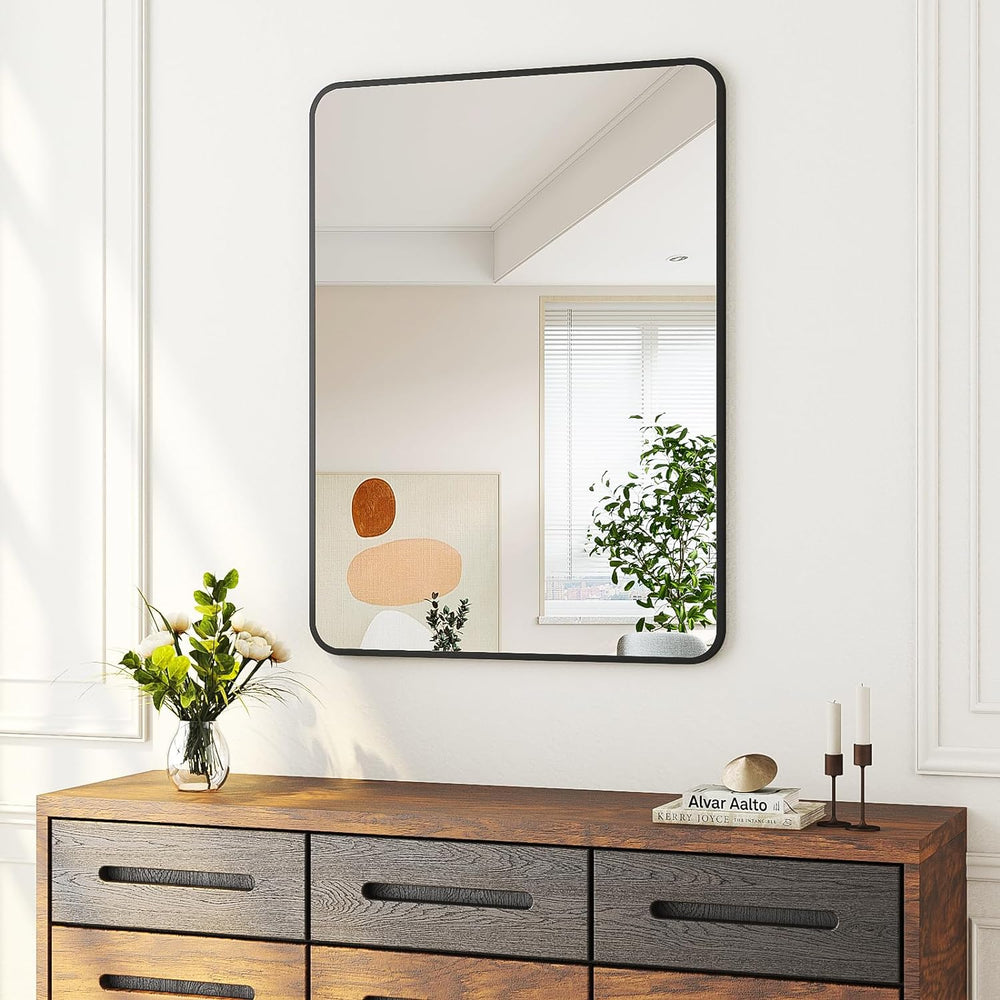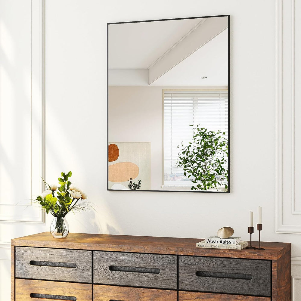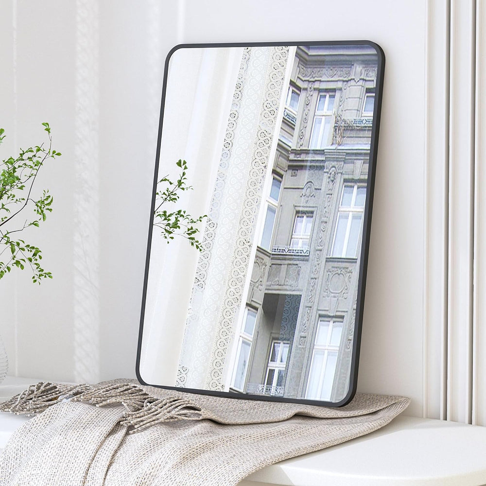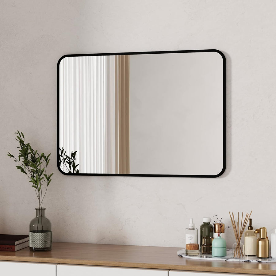 Boromal Spiegel Schwarz 40x60cm Badezimmer Spiegel Vertikal/Horizontal Dekorative Wandspiegel für Ba