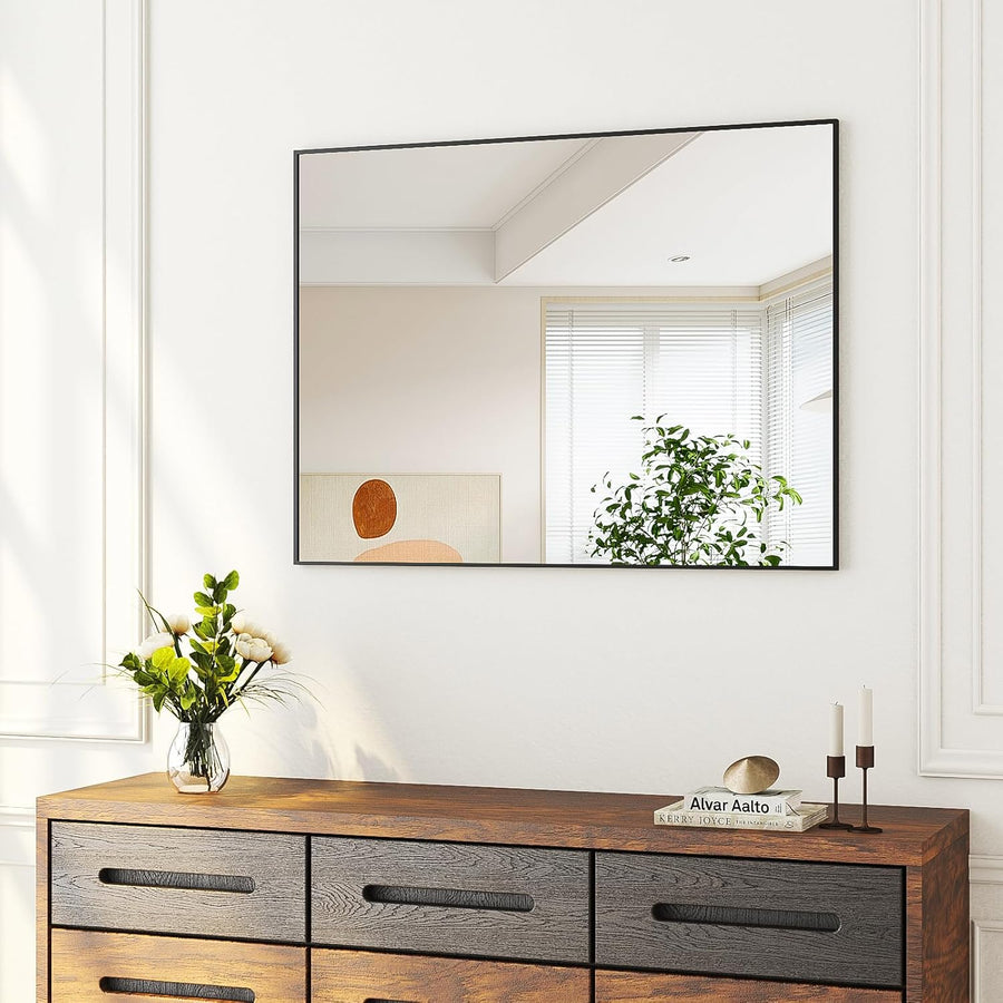 Boromal Spiegel Schwarz 100x60cm Rechteckiger Spiegel mit Metall Rahmen Badspiegel Schwarz Wandspieg