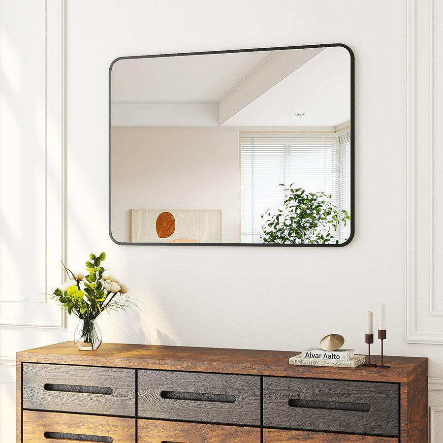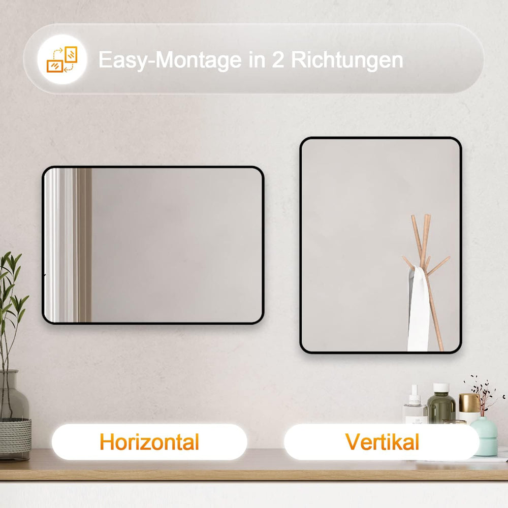 Boromal Badspiegel Schwarz 50x70cm Spiegel Schwarz Metallrahmen Vertikal/Horizontal Dekorative Wands