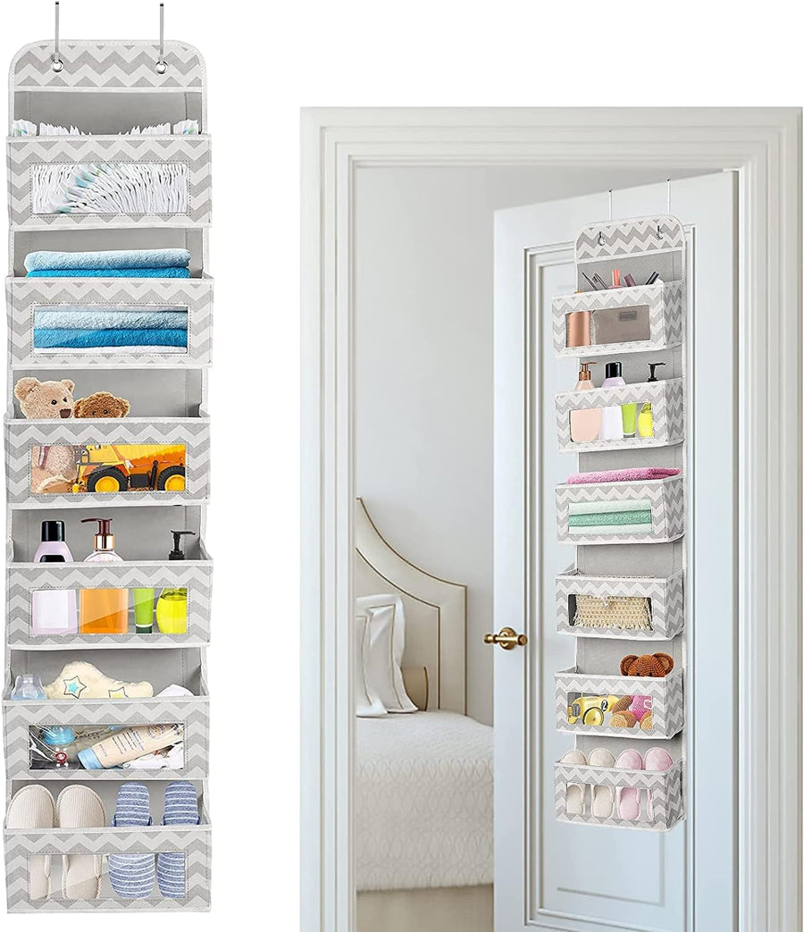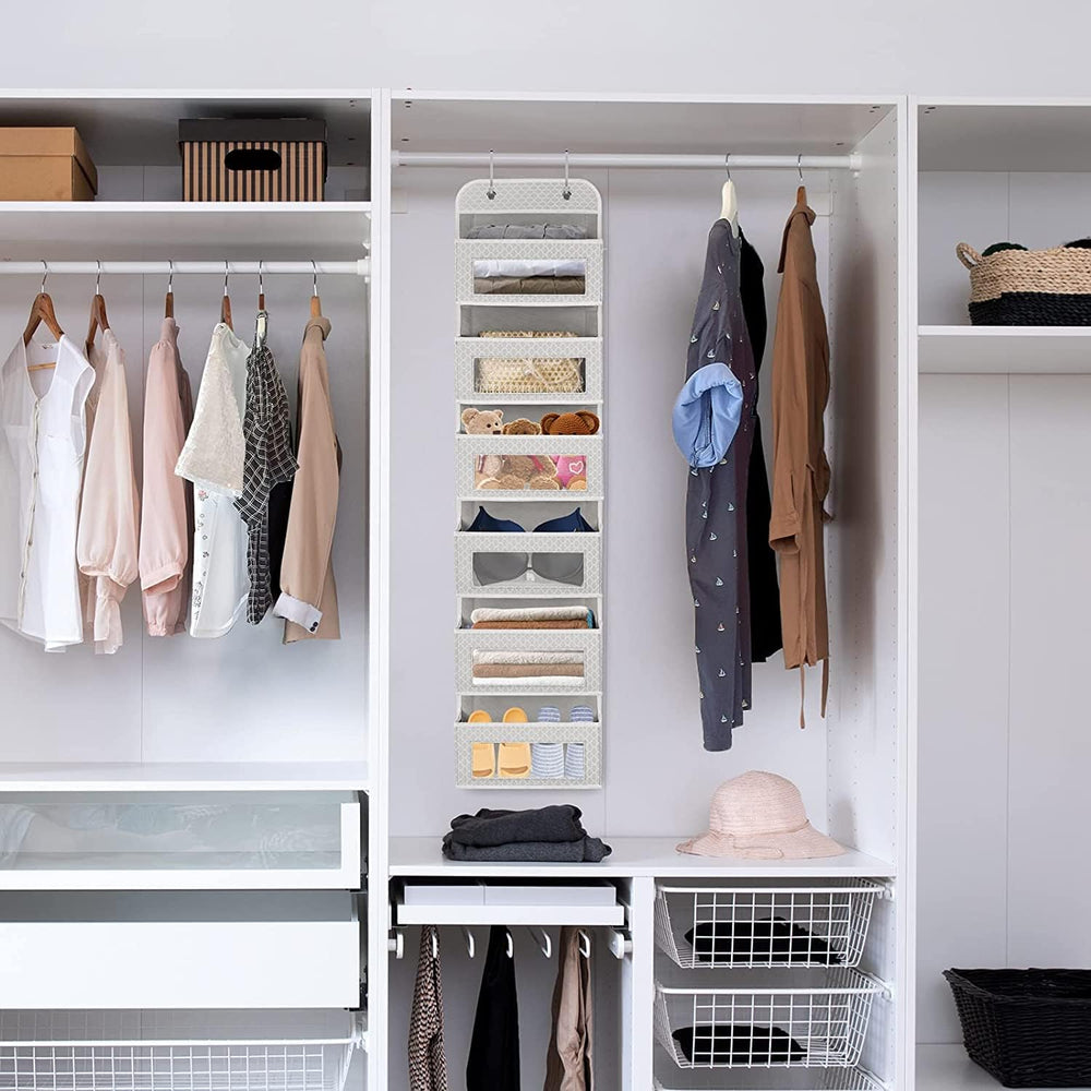 Hängeorganizer mit 6 Durchsichtigen Taschen, Hängeaufbewahrung mit 2 Haken, Hängeregal Schrankorgani