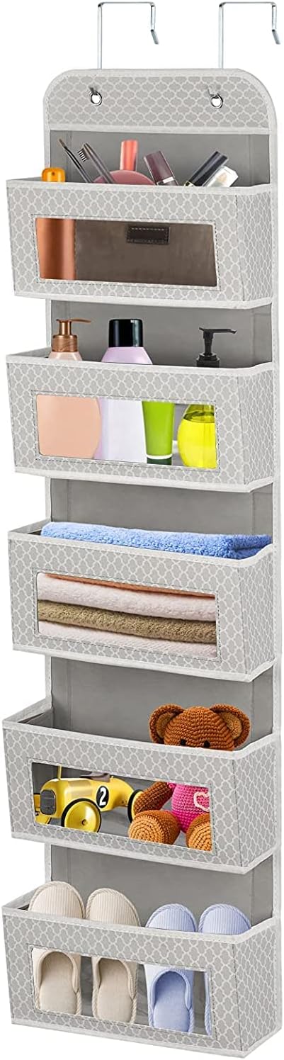 Hängeorganizer mit 5 Durchsichtigen Taschen, Hängeaufbewahrung mit 2 Haken, Hängeregal Schrankorgani