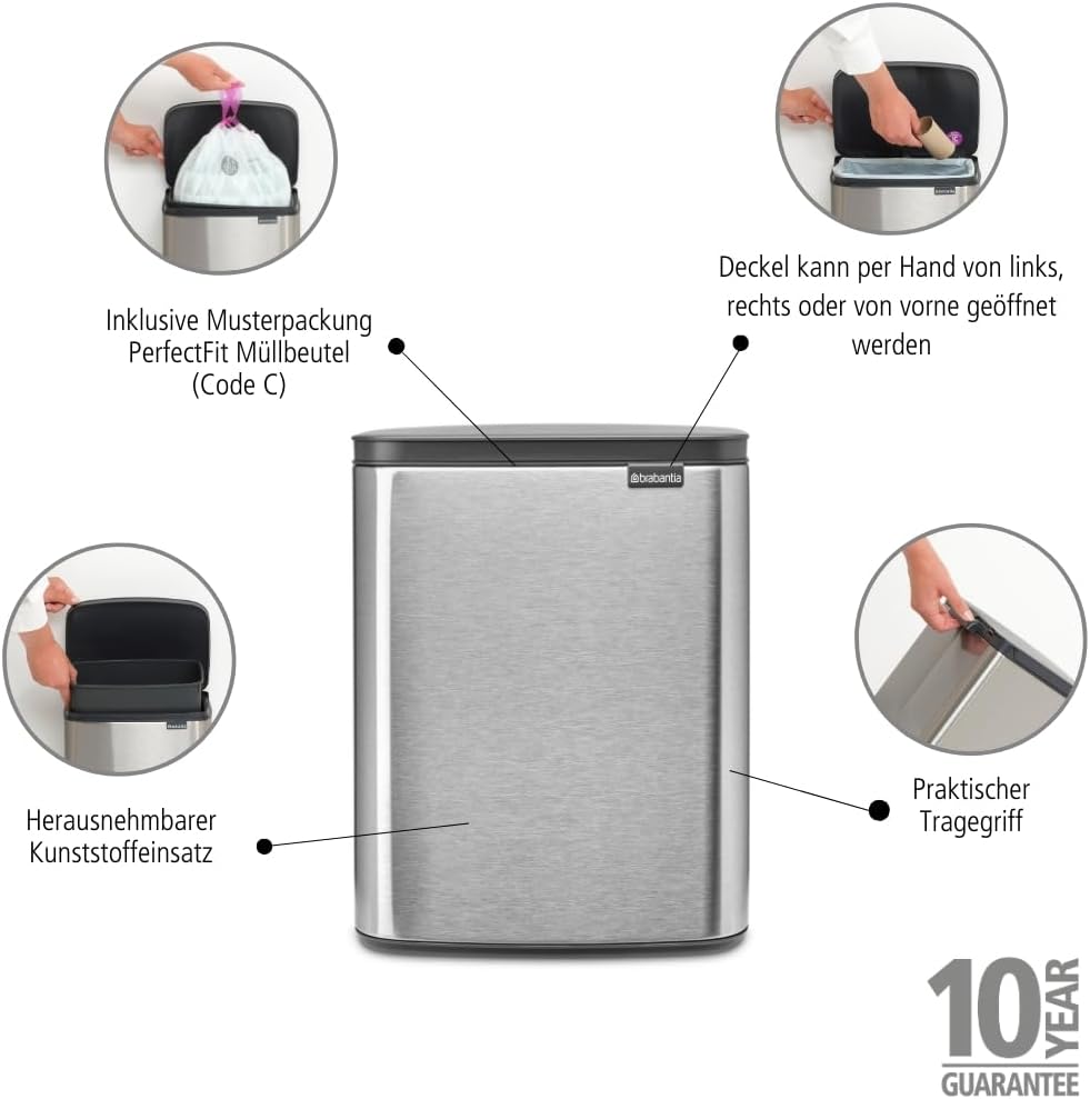 Brabantia - Touch Bin 40L - Grosser Mülleimer für die Küche - Soft-Touch-Öffnung - Entnehmbarer Inne