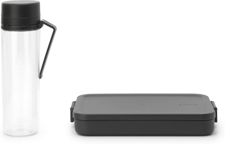 Brabantia - Make & Take Frühstück-Set - 2er-Set: Wasserflasche 0.5L + Lunch Box Flach - Platz für Sa