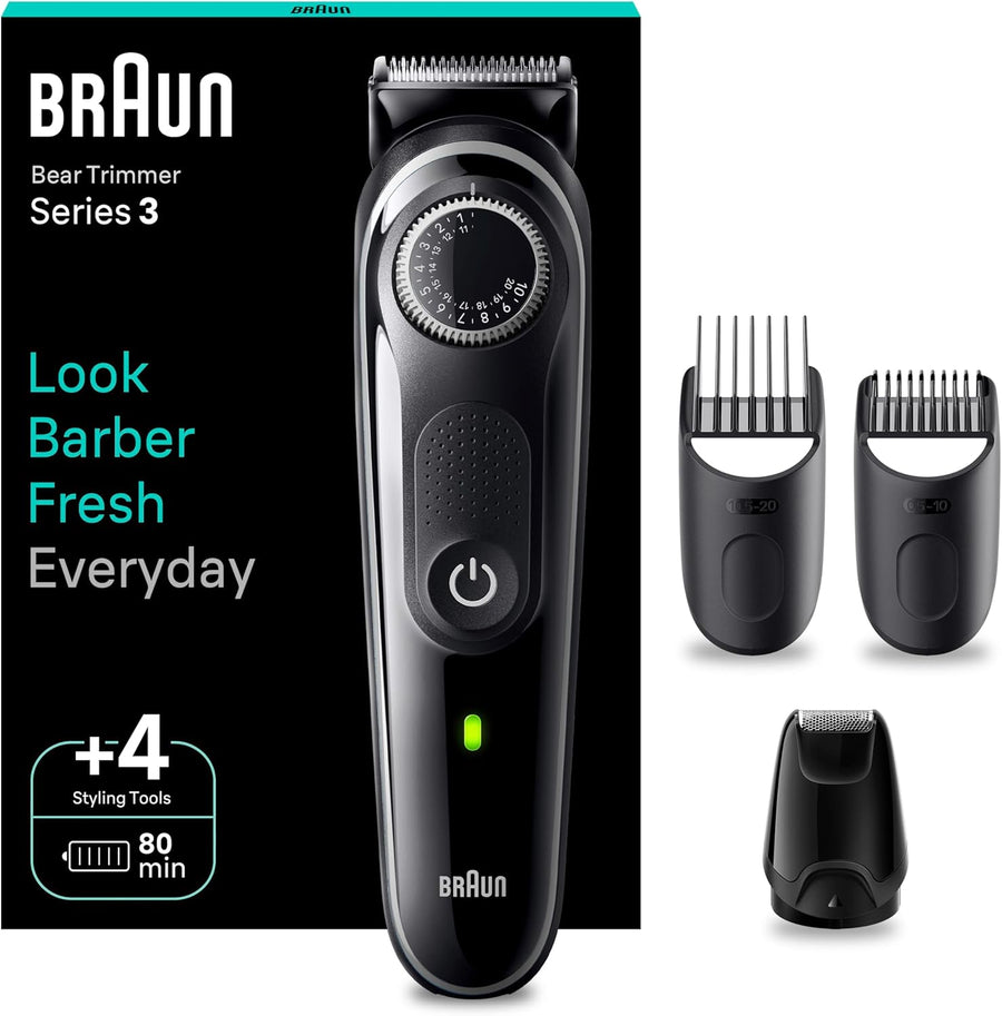 Braun Barttrimmer, Trimmer/Haarschneider Herren, Haarschneidemaschine mit ultrascharfer Klinge, 40 L