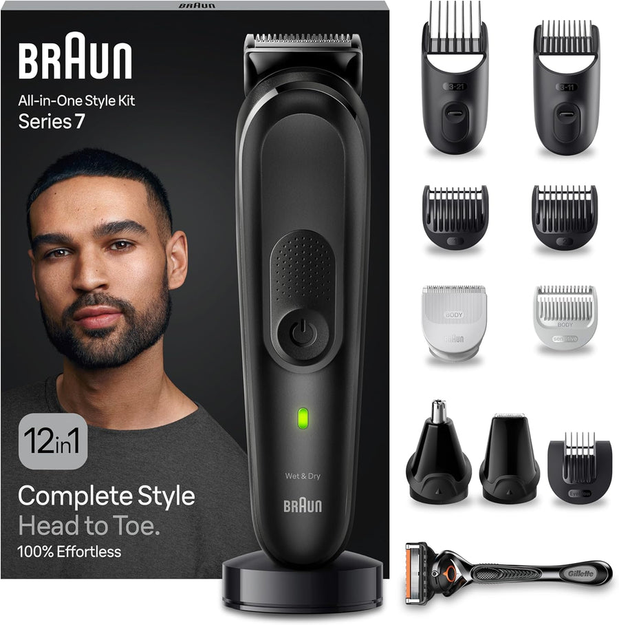 Braun All-in-One Trimmer-Set 7, 13-in-1 Multigroom, Haarschneidemaschine für Gesicht, Kopf und Körpe