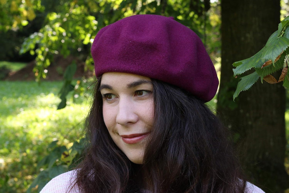 Breiter Damen Baskenmütze Damenmütze Wollmütze - One Size - Barret aus 100% Wolle Einheitsgrösse Ame
