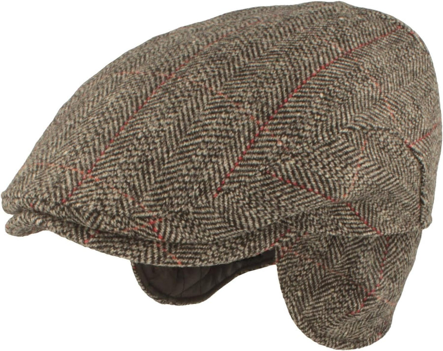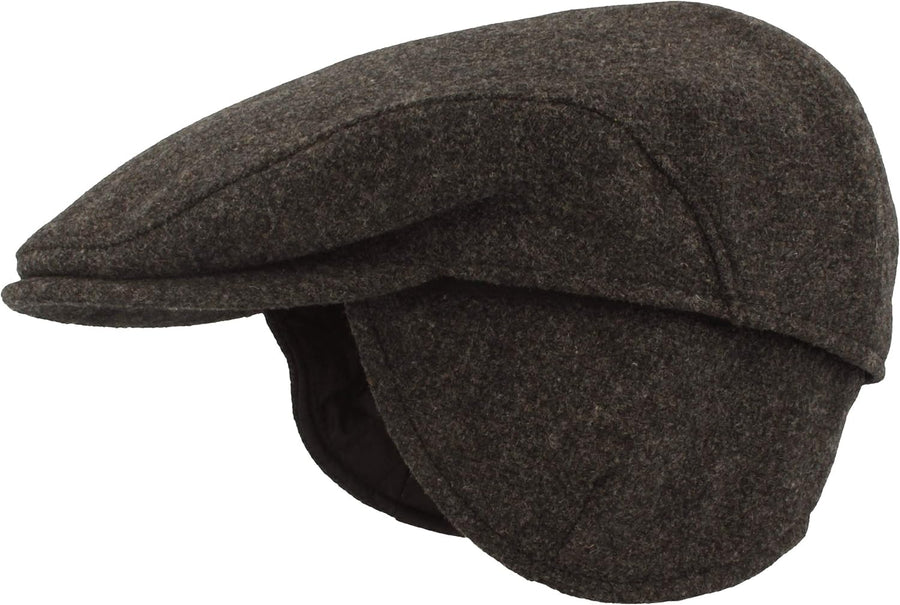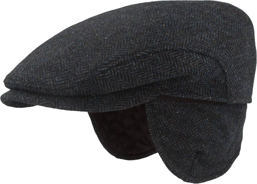 Breiter Herren Winter Schiebermütze mit Ohrenklappen Flatcap Schirmmütze 100% Wolle mit ausklappbare