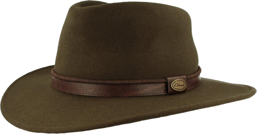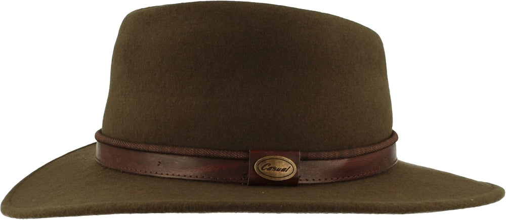 Breiter Rollbarer Outdoor Filzhut Trekkinghut 100% Wolle Wasserabweisend faltbar Ledergarnitur Oliv