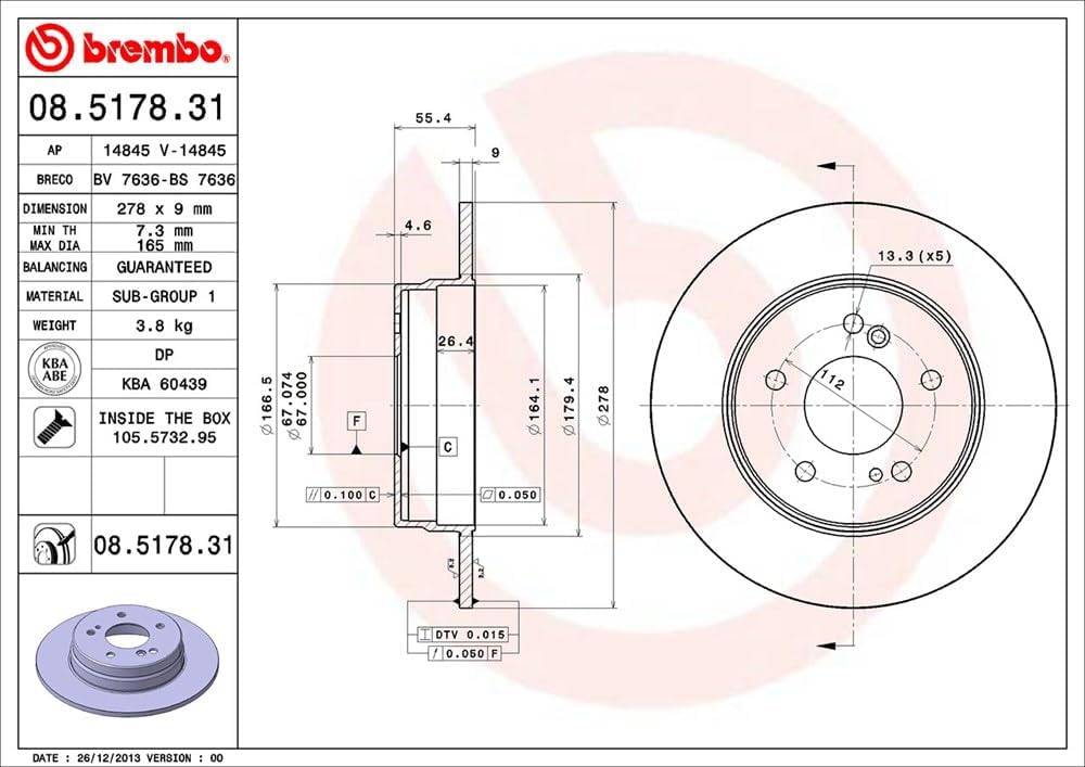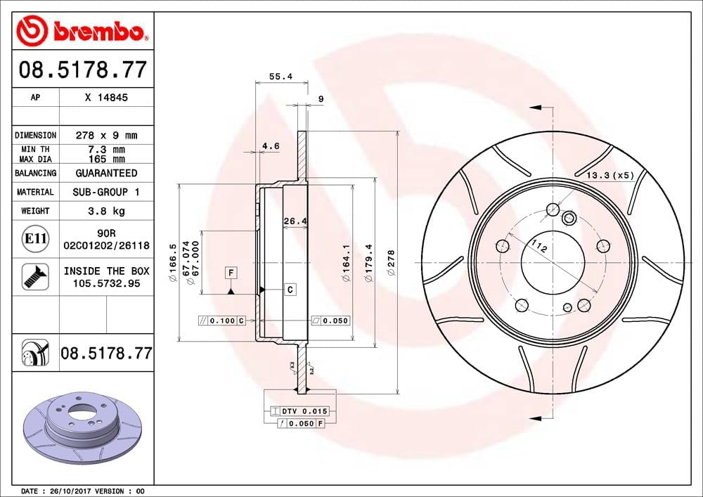 Brembo 08.5178.77 Hintere Bremsscheibe, Anzahl 2