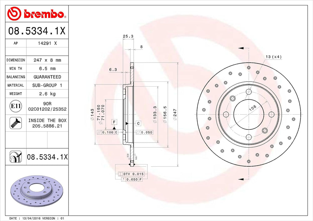 Brembo 08.5334.75 Hintere Bremsscheibe, Anzahl 2