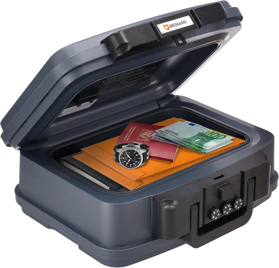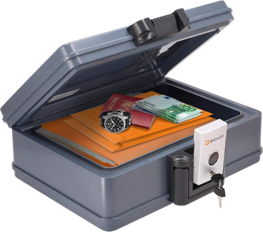 BRIHARD - Zertifizierte Feuerfeste Dokumentenbox 2017 A4, Safe Tresor Feuerfest Wasserdicht mit Schl