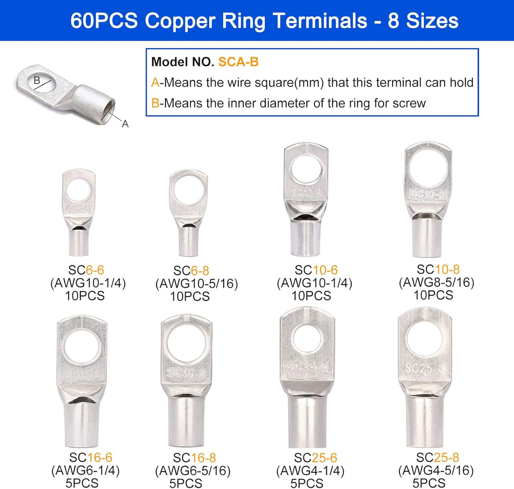 Brileine Batteriekabelschuh Crimpzange Gross 10–1/0 AWG mit 8 Grössen 60 Stück Kupferringklemmen – C