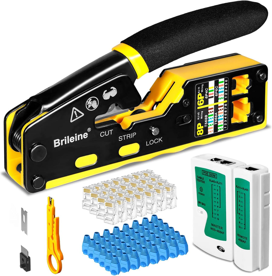 Brileine RJ45 Crimpwerkzeug-Set Cat5e Cat6 Crimpwerkzeug-Set Crimper Kit 6, Crimper Kit 6