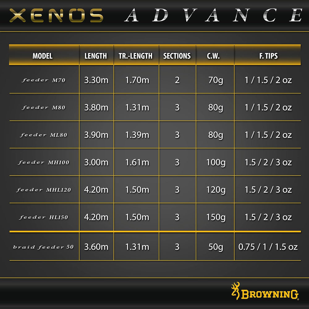 Browning Premium Xenos Advance Feeder Feederrute mit hochwertigem Blank, Angeln auf Friedfisch mit F