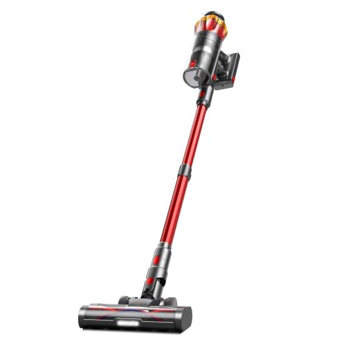 Akku Staubsauger 48000Pa/580W/65Min, 1,8L Staubsauger Kabellos mit Display, Anti-Tangle-Bürste, Selb
