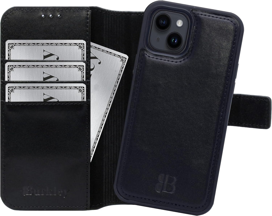 Burkley 2in1 Leder Handytasche für iPhone 13 Handyhülle mit herausnehmbarem Back Cover, 360° Schutz