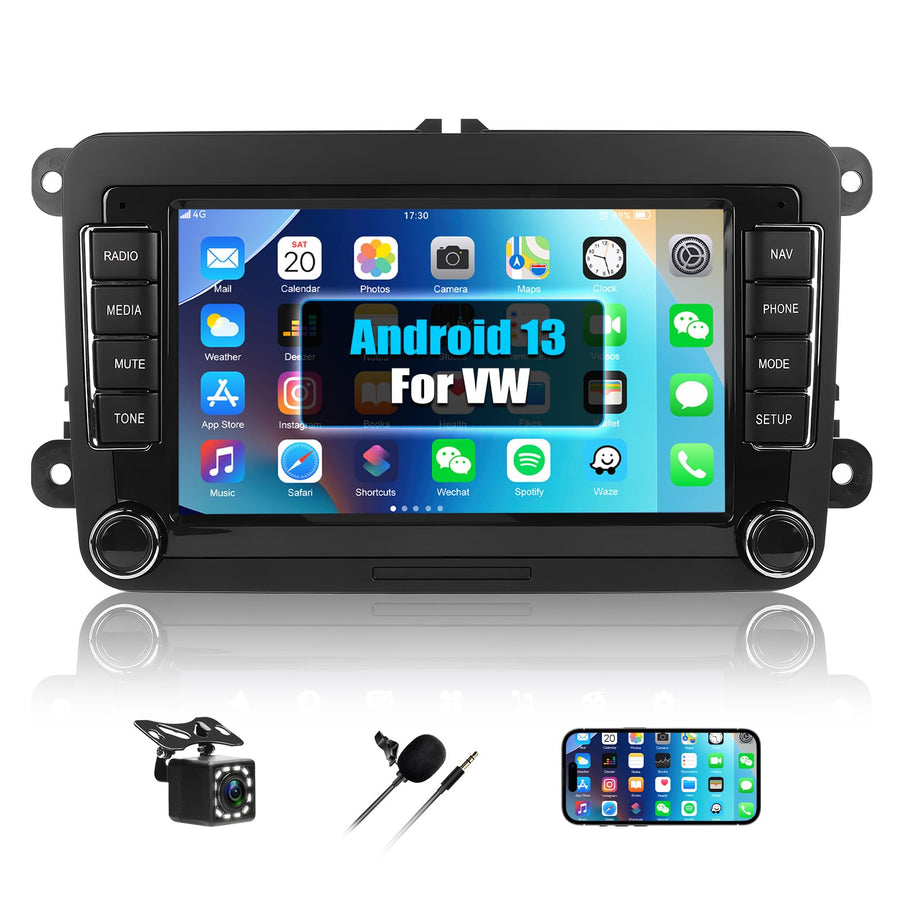 2GB+64GB CAMECHO Android 13 Autoradio für VW/Skoda/Seat/Golf/Touran/Tiguan mit Navi Carplay Android