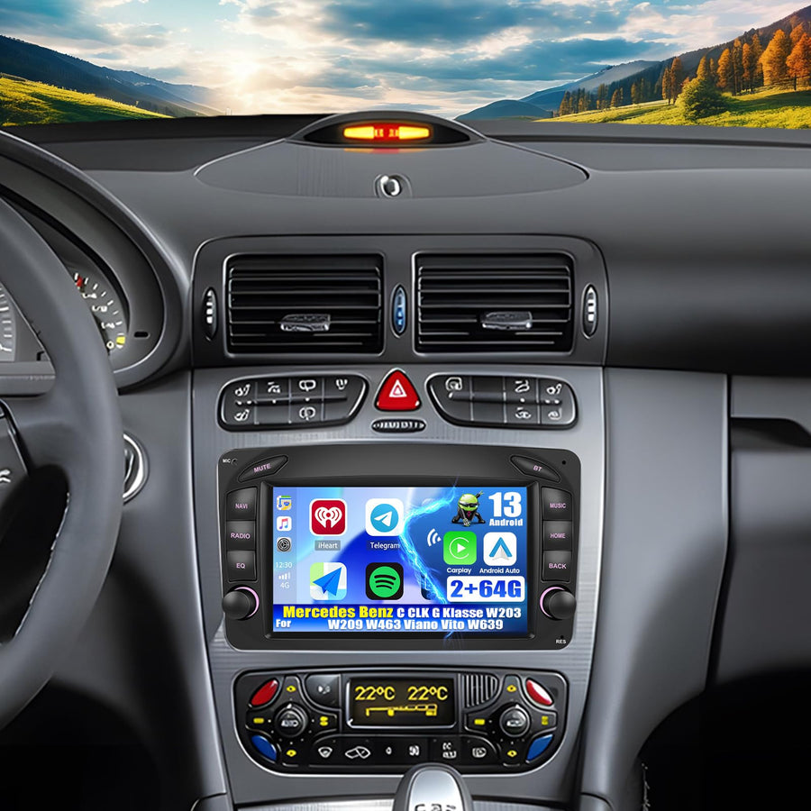 2GB+64GB CAMECHO Android 13 Autoradio mit Navi für Mercedes Benz C CLK G Klasse W203 W209 W463 Viano