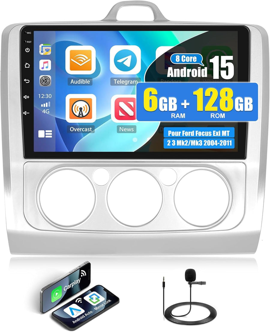 4G+128G CAMECHO Android 15 Autoradio für Ford Focus Mk2/Mk3 Exi MT 2 3 (2004-2011) mit Navi Carplay