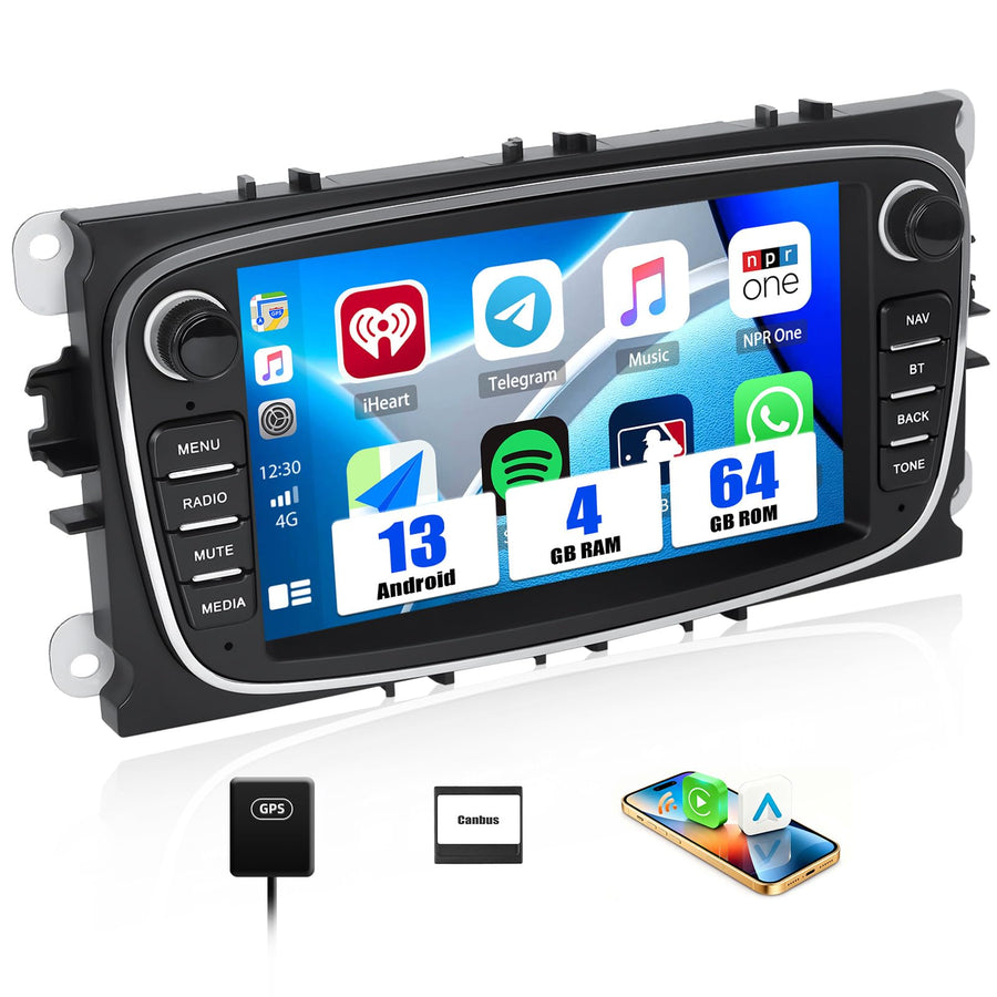 CAMECHO 4+64G Android 13 Autoradio für Ford Focus mk2 Mondeo Cmax Galaxy Smax Kuga mit Carplay/Andro