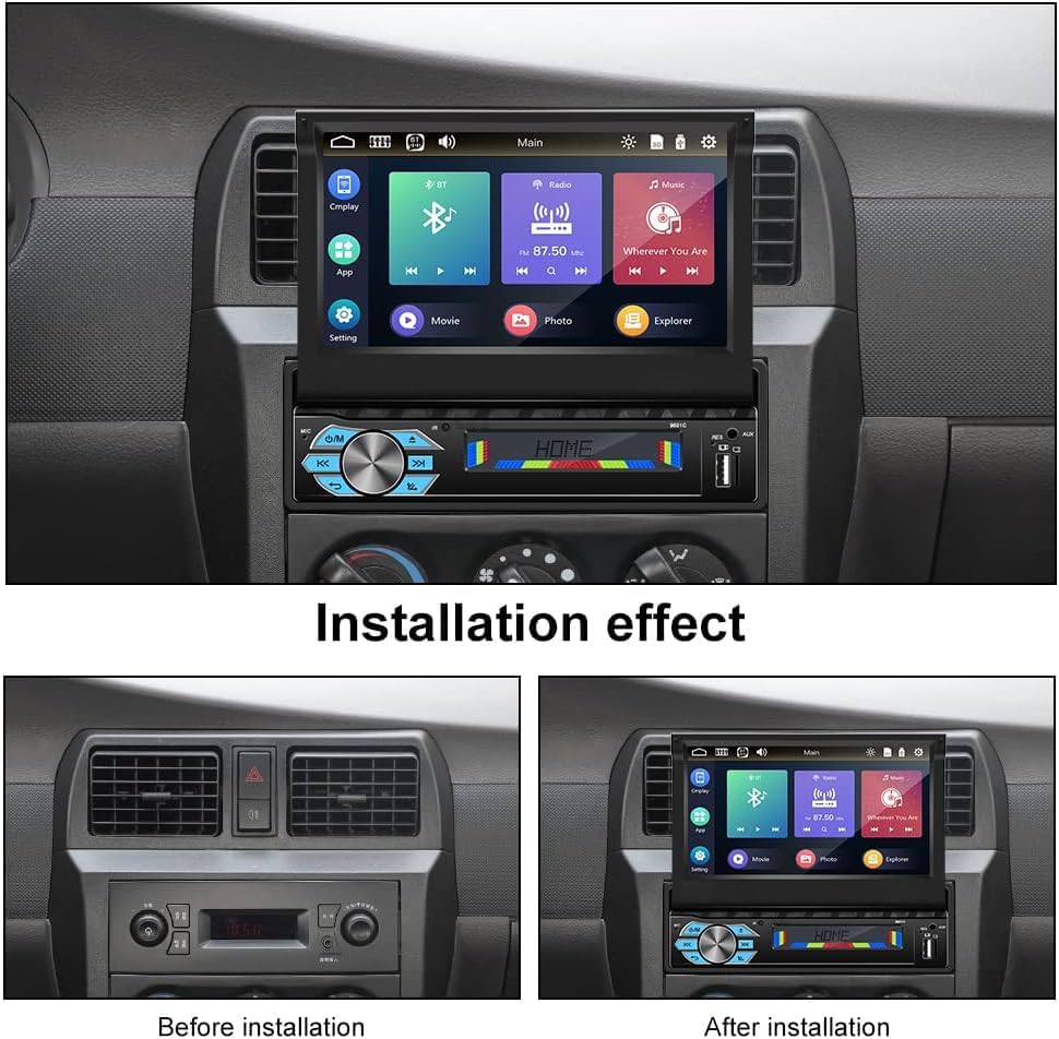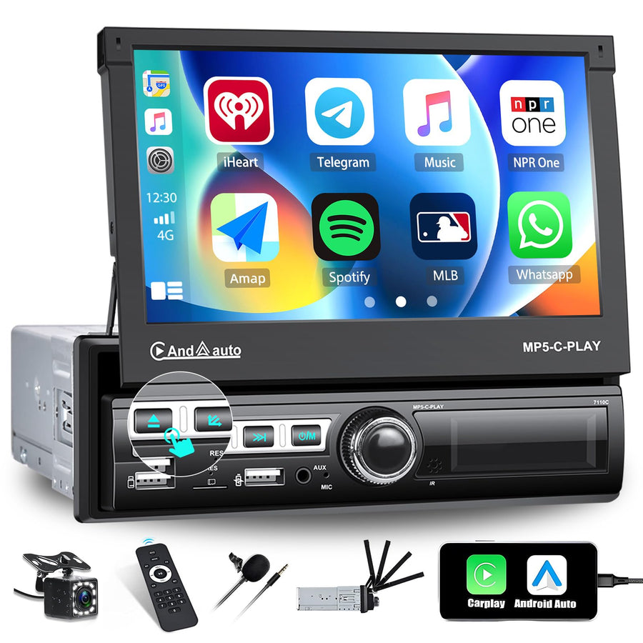 CAMECHO 1 Din Carplay/Android Auto/Mirror Link Autoradio mit 7 Zoll Automatisch Ausfahrbares Touchsc