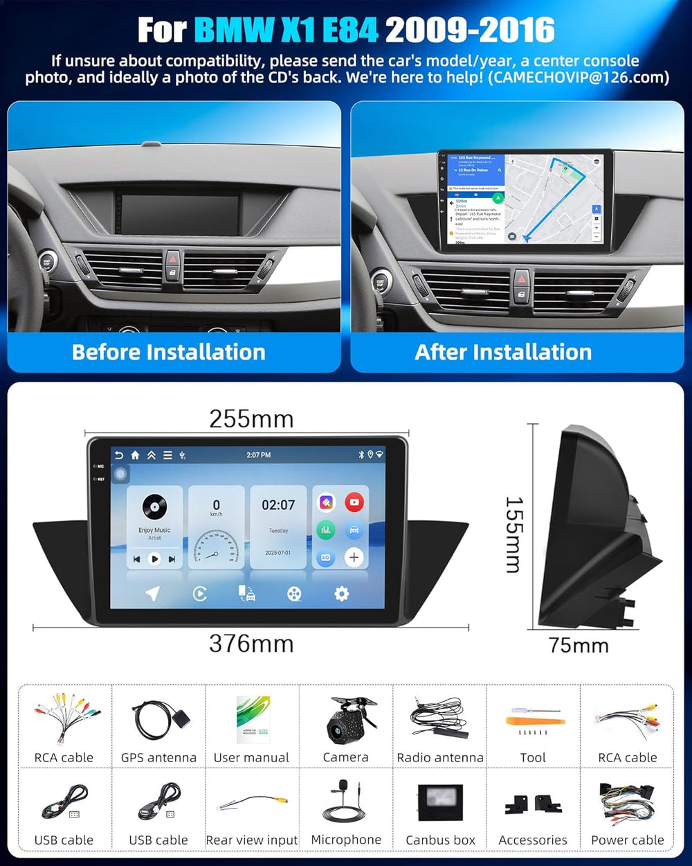 2G+64G CAMECHO Android 13 Autoradio mit Navi für BMW X1 E84(2009-2016),10 Zoll Bildschirm Doppel Din