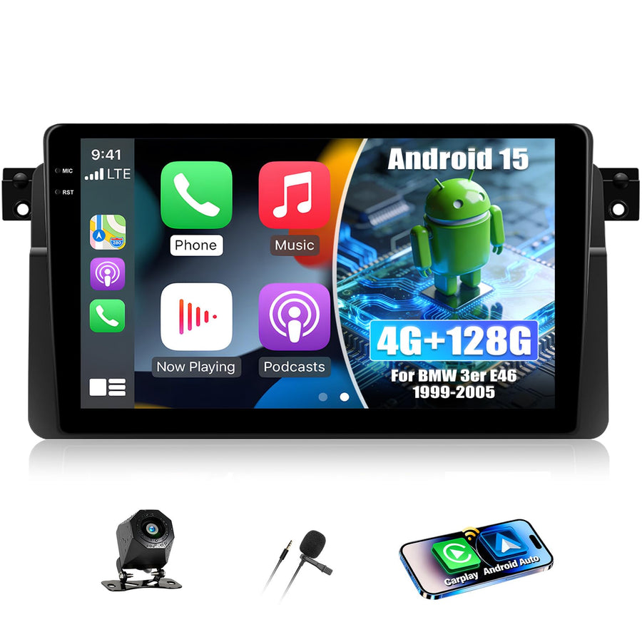 CAMECHO 4+128G 9 Zoll Android 15 Navi Autoradio für BMW 3er E46 1999-2005, E46 Radio Bluetooth mit G
