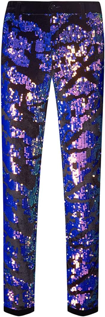 CARFFIV Herrenmode, Blumenmuster, glänzende Pailletten, Samt-Hose XS Map Purple, XS Map Purple