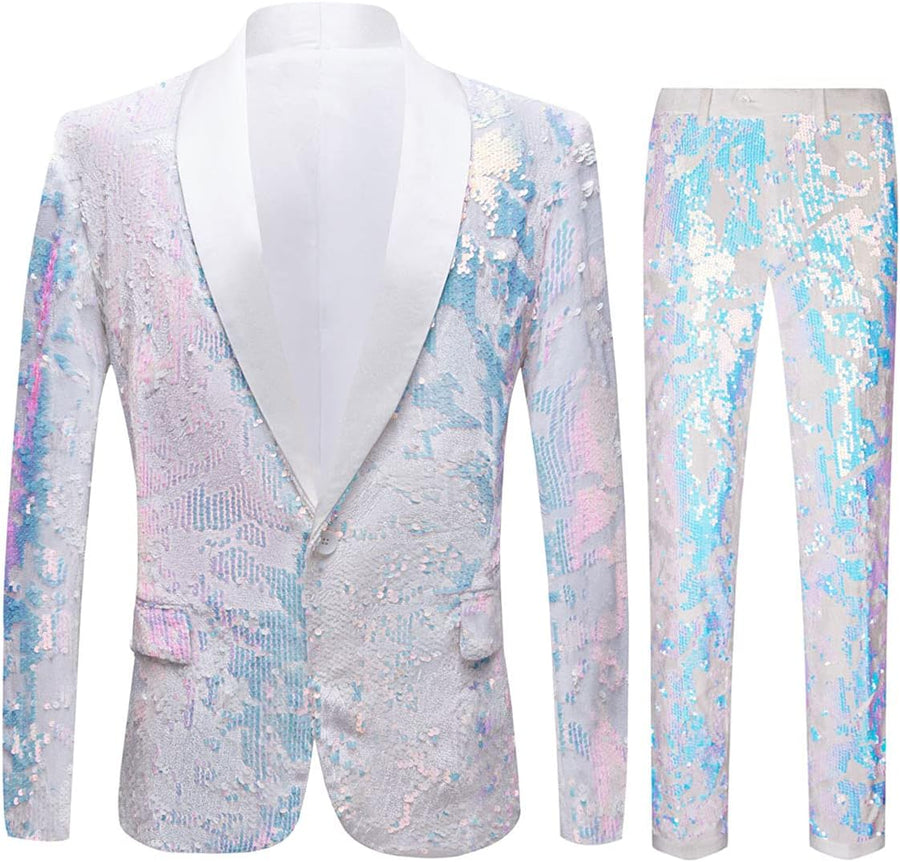 CARFFIV Herren Modische Blumenmuster Pailletten Zweiteiler Set Anzüge XS Map White, XS Map White
