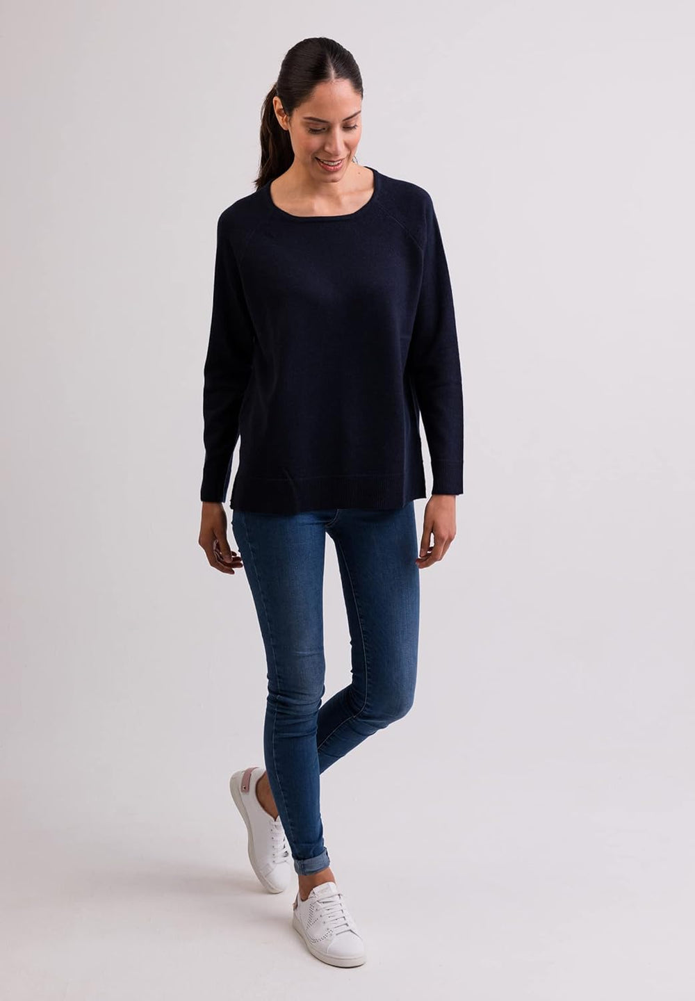 CASH-MERE.CH 100% Kaschmir Damen Pullover mit geradem Schnitt und Seitenschlitz | Sweater Rundhalsau